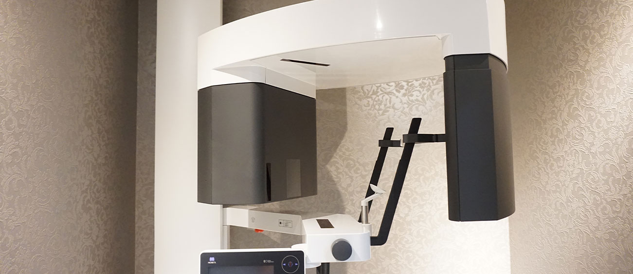 デジタルレントゲンは、従来のレントゲンと比べて被ばく量が1/10ほどで、お身体への負担を抑えられます。歯科用CTは、立体画像(3D)でお口の中を撮影できるため、神経や血管の位置、顎の骨の厚みなど、細部まで鮮明に映し出すことができます。